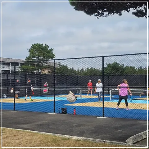 Guests enjoy a beachside experience filled with sunshine, fresh ocean air, and unforgettable memories. Relax by the indoor pool, play a match on one of our two new pickleball courts, enjoy an immersive escape at our Dark Harbour Tiki Bar and Restaurant, opening this spring, or take advantage of the beach just steps away. The serene setting provides the perfect balance between the lively energy and the quiet charm. Every stay offers a unique blend of recreation, comfort, and coastal tranquility.
